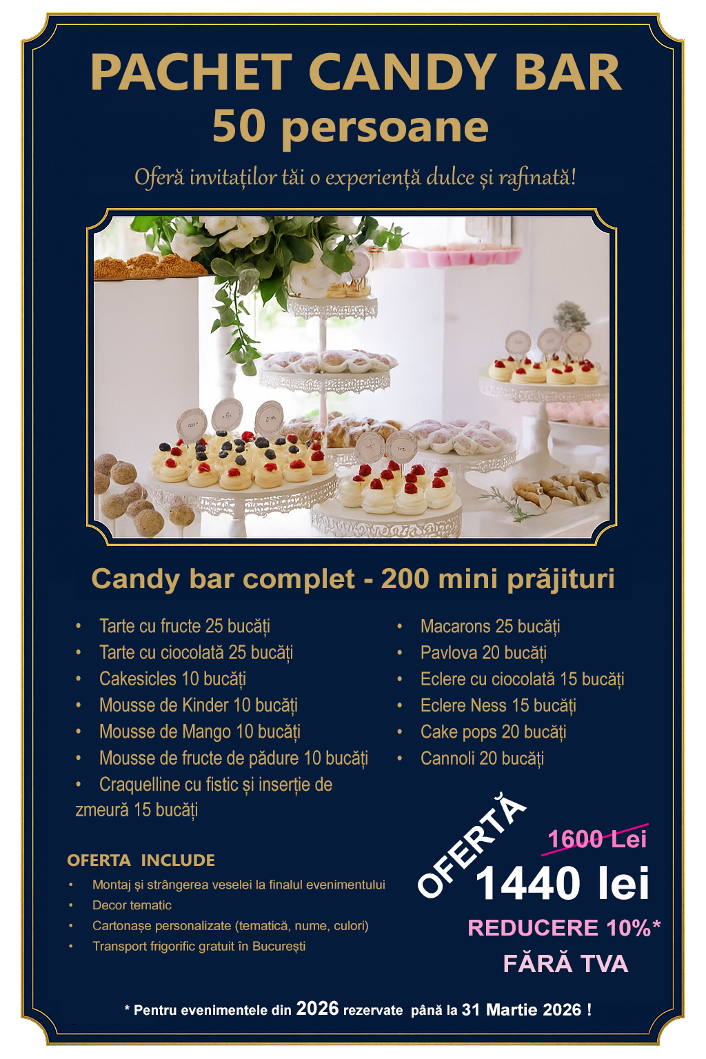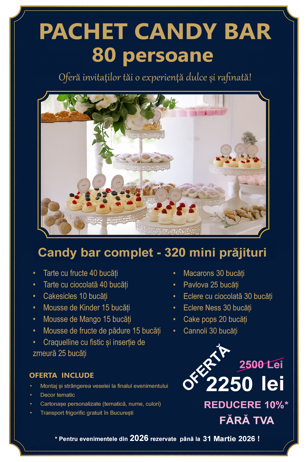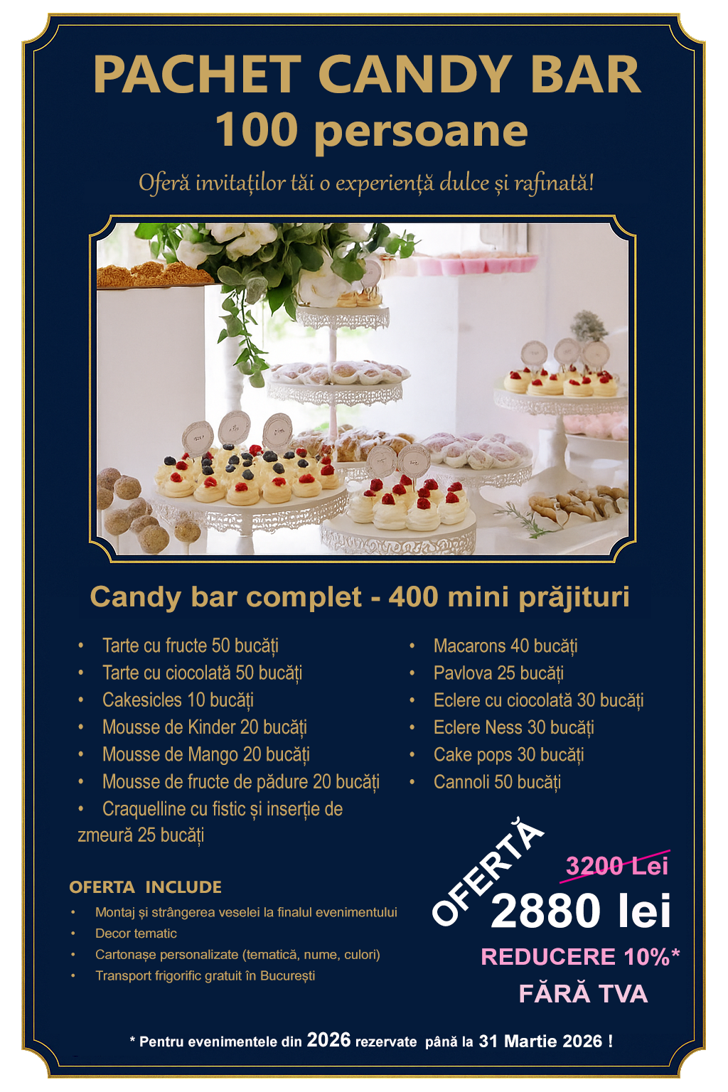 Cofetarie Bucuresti Sector 6 – vă oferă torturi personalizate, prăjituri artizanale și candy bar pentru evenimente. Gust autentic, livrare rapidă în București și Ilfov.
